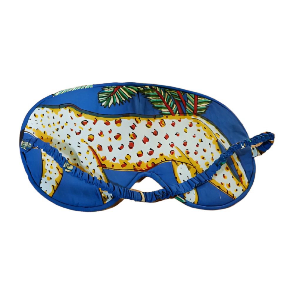 Soft cotton blackout eye mask, hand screen printed in an exotic blue jungle fabric.