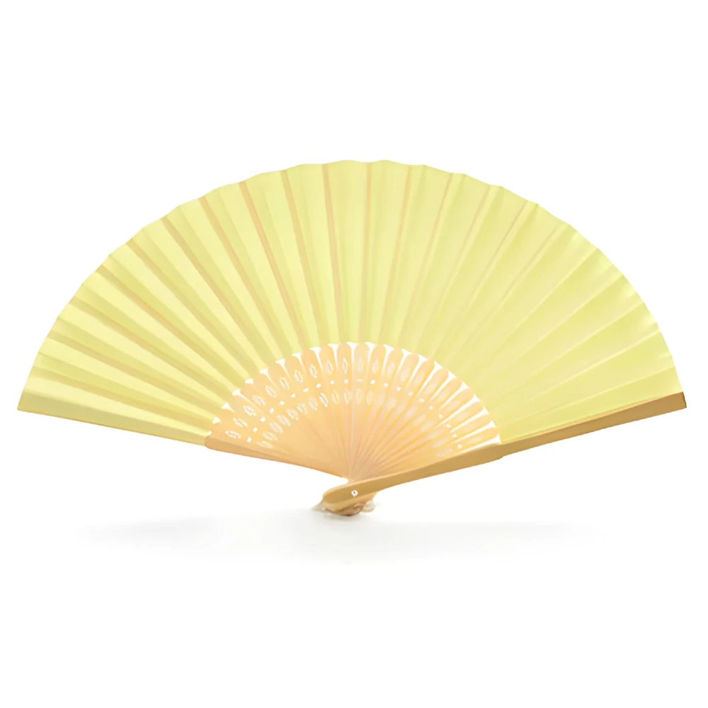 Light Yellow Paper Folding Fan with Sandalwood Handle