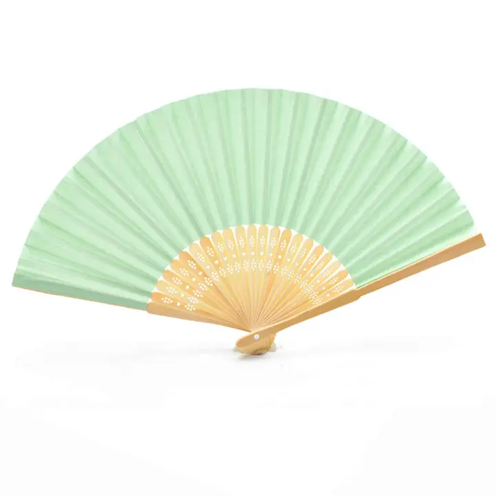 Mint Green Paper Folding Fan with Sandalwood Handle