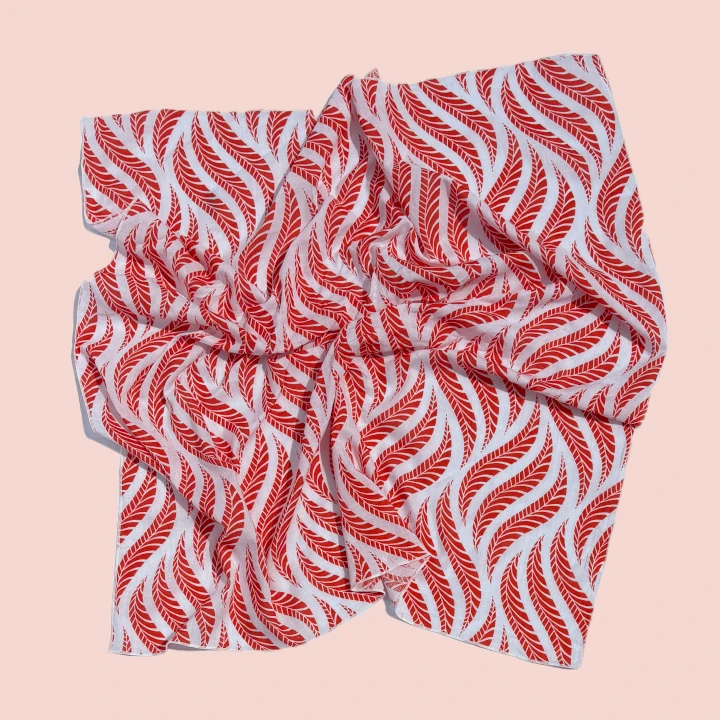 Throwback to a retro 1960s wavy seagrass feel that’s equal parts mod and beachy. This orange-red stunner says, “I’m artsy enough to appreciate abstract patterns but practical enough to use this as a napkin in emergencies.”