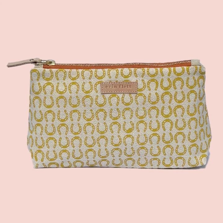 Artist Erin Flett’s multi-use silk screened print pouch or make-up bag (she’s lined in cotton canvas)